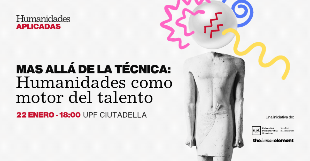 El pasado enero, The Human Element co-organizó junto con la Facultat d'Humanitats de la Universitat Pompeu Fabra el primer encuentro del ciclo Humanidades Aplicadas, "Más allá de la técnica: las humanidades como motor del talento". La sala del campus de la Ciutadella se llenó de estudiantes, profesionales de recursos humanos, investigadores y líderes empresariales que compartieron sus experiencias, inquietudes y su visión sobre el futuro del talento.